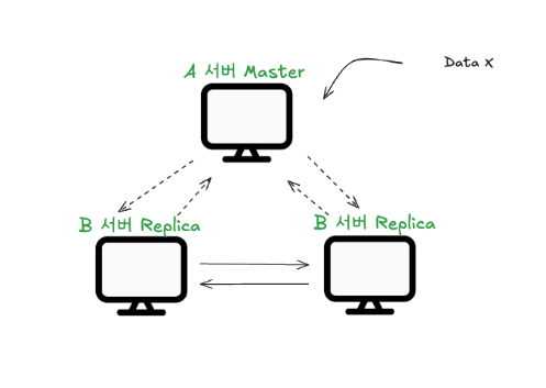 Raft 합의 알고리즘에 의하면 A노드가 Data X를 처리하기 위해서는 과반수 이상의 복제 노드로부터 동의를 받아야합니다.(3대의 노드중 2대)