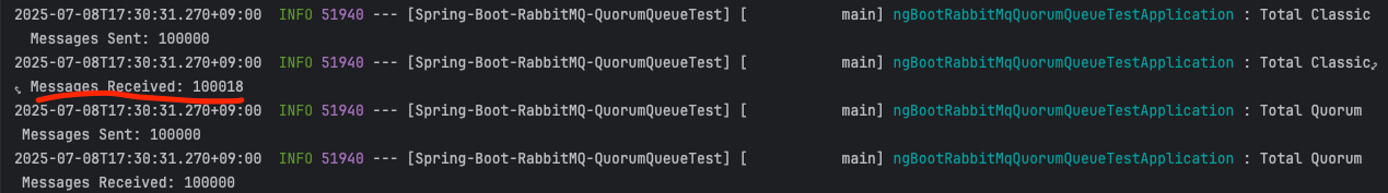이미 위 두 개의 결과창에서 보셨겠지만 메시지 유실 하나 없이 10만개 모두 처리함을 볼 수 있습니다.